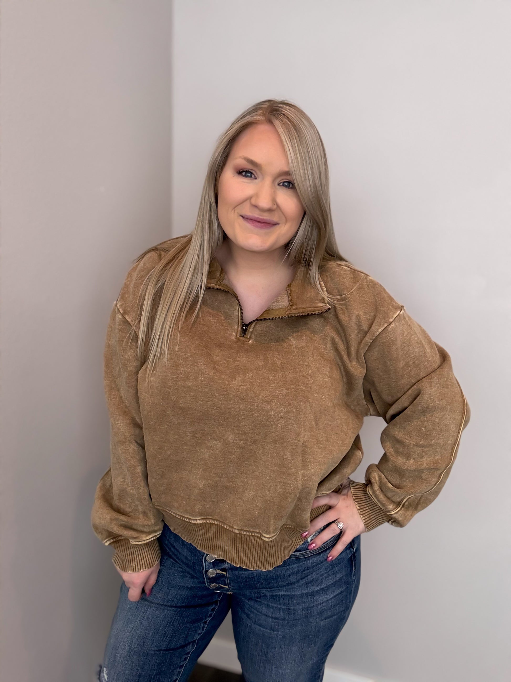 Plus Size | Danielle Acid Wash Half Zip Pullover