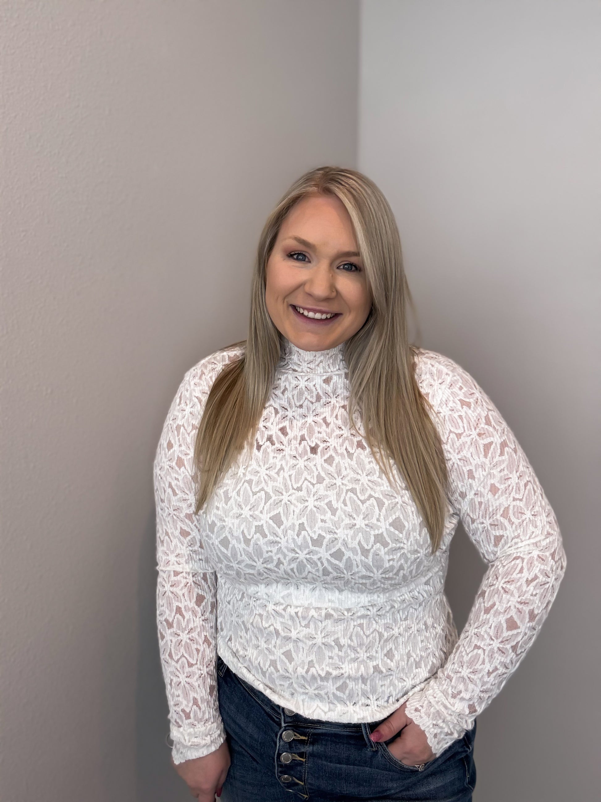 Maci Flower Lace Mock Neck Long Sleeve Top