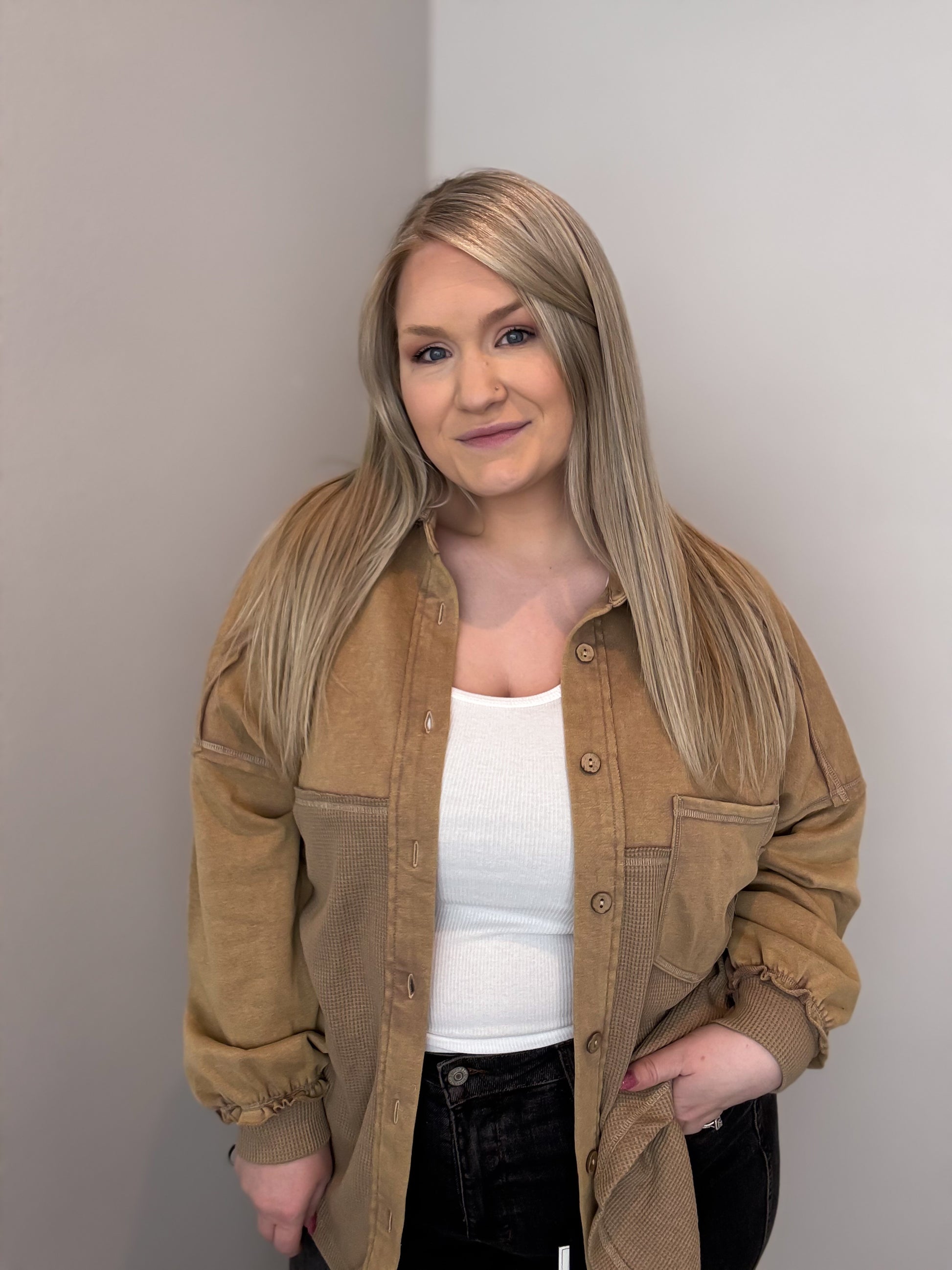 Introducing the Presley Mineral Wash Textured Shacket which has the perfect blend of rugged style and cozy comfort. Featuring a unique mineral wash finish, this shacket offers a soft, lived-in feel with a one-of-a-kind texture. The oversized fit provides an easy, relaxed look, while the textured fabric adds depth and dimension to your outfit. With its versatile design, you can wear it as a light jacket on cooler days or layer it over your favorite pieces for an added touch of style.